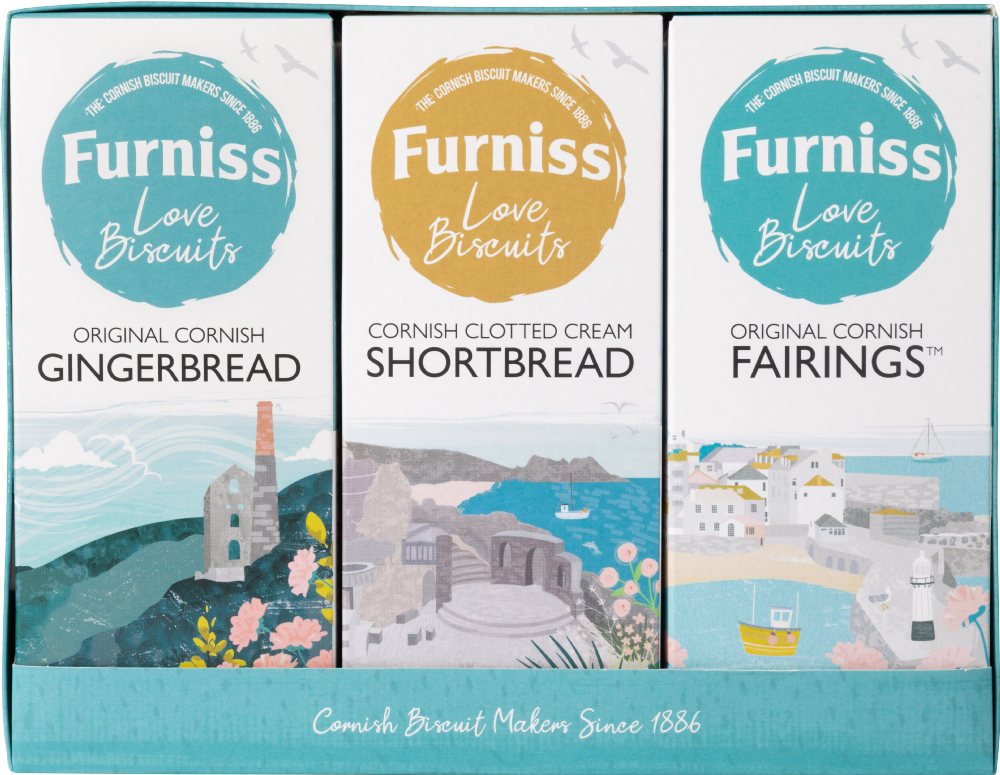 A fabulous gift containing 3 favourites - Original Cornish Fairings, Cornish Clotted Cream Shortbread and Original Cornish Gingerbread.