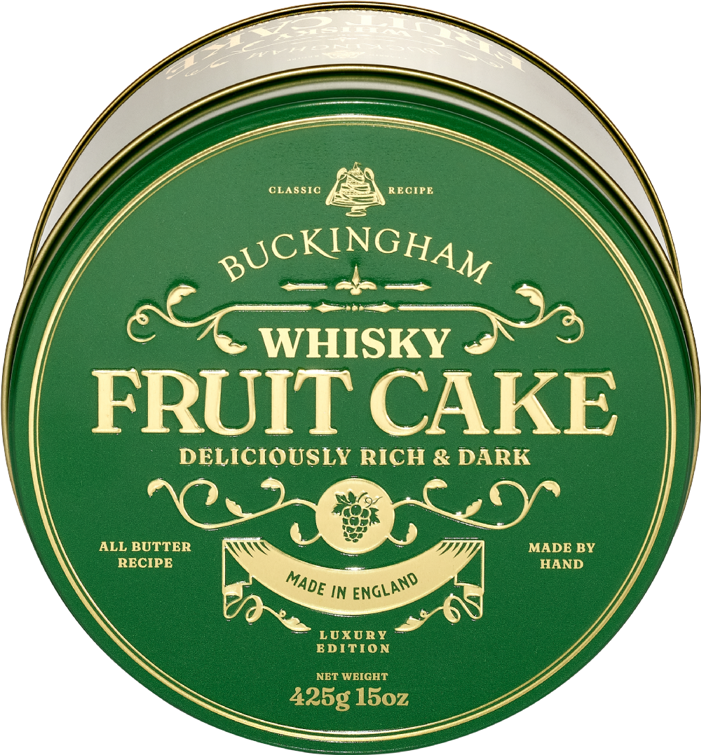 The classic Buckingham recipe gently laced with Scotch whisky. The perfect gift for someone who enjoys whisky. Made with pure butter, juicy sultanas, raisins, currants, sumptuous cherries, tangy orange and lemon peel and a pinch of spice. Before baking, the dried vine fruits are soaked overnight in a smooth Scottish whisky. Deliciously rich, dark, moist and fruity. The whisky infusion provides an extra-special taste, but it's subtle, not too strong, so that the full flavour of the fruits still comes through. Packaged in a beautiful keepsake tin, exclusive to Buckingham, decorated with a specially commissioned design in embossed Victorian style.