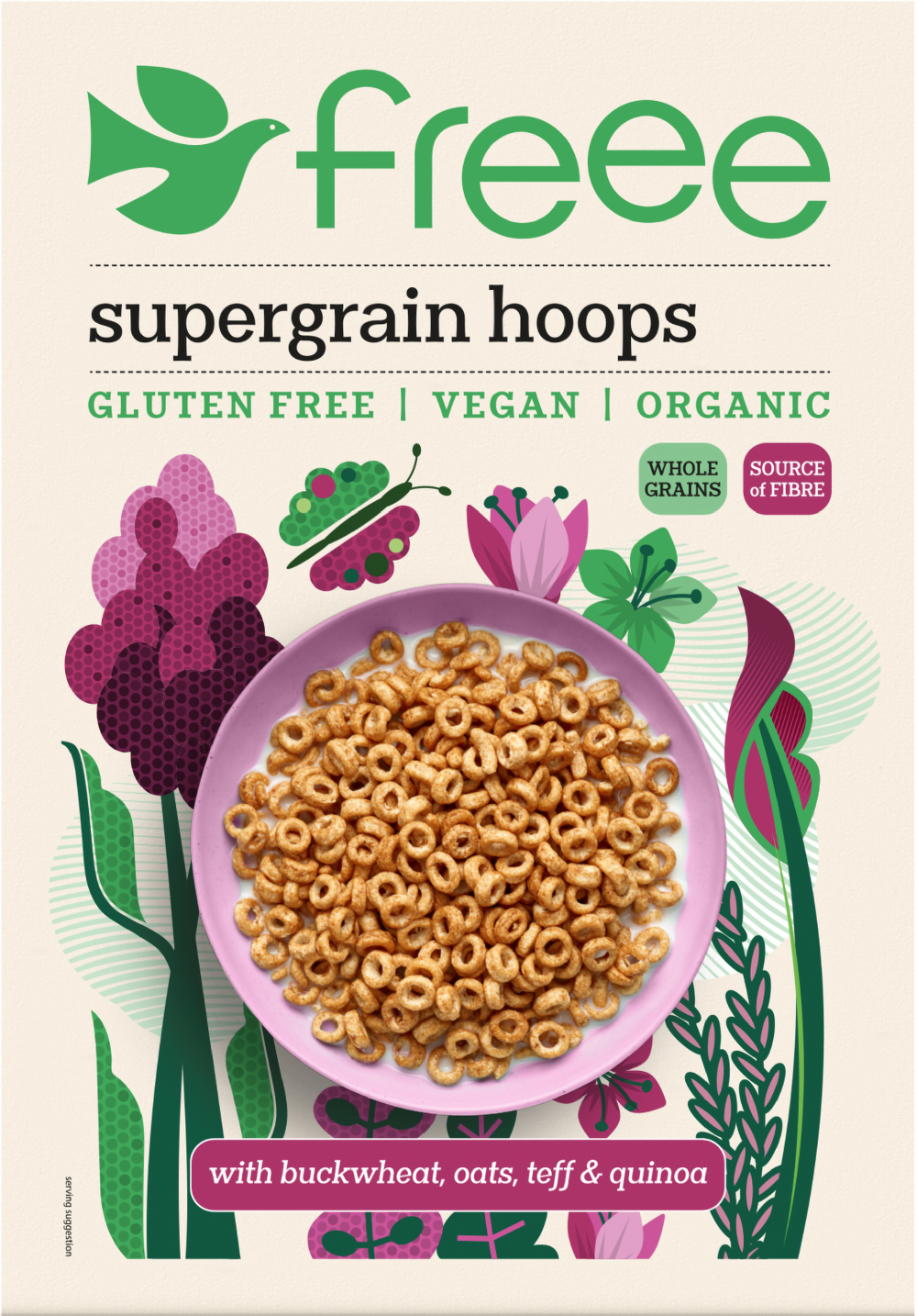 Discover a world of nature’s supergrains…These crunchy Gluten Free Organic Supergrain Hoops are packed with lightly toasted wholegrains like buckwheat, oats, teff and quinoa, enjoyed by different cultures for centuries. A gluten free, organic and vegan breakfast with flavours from around the world.