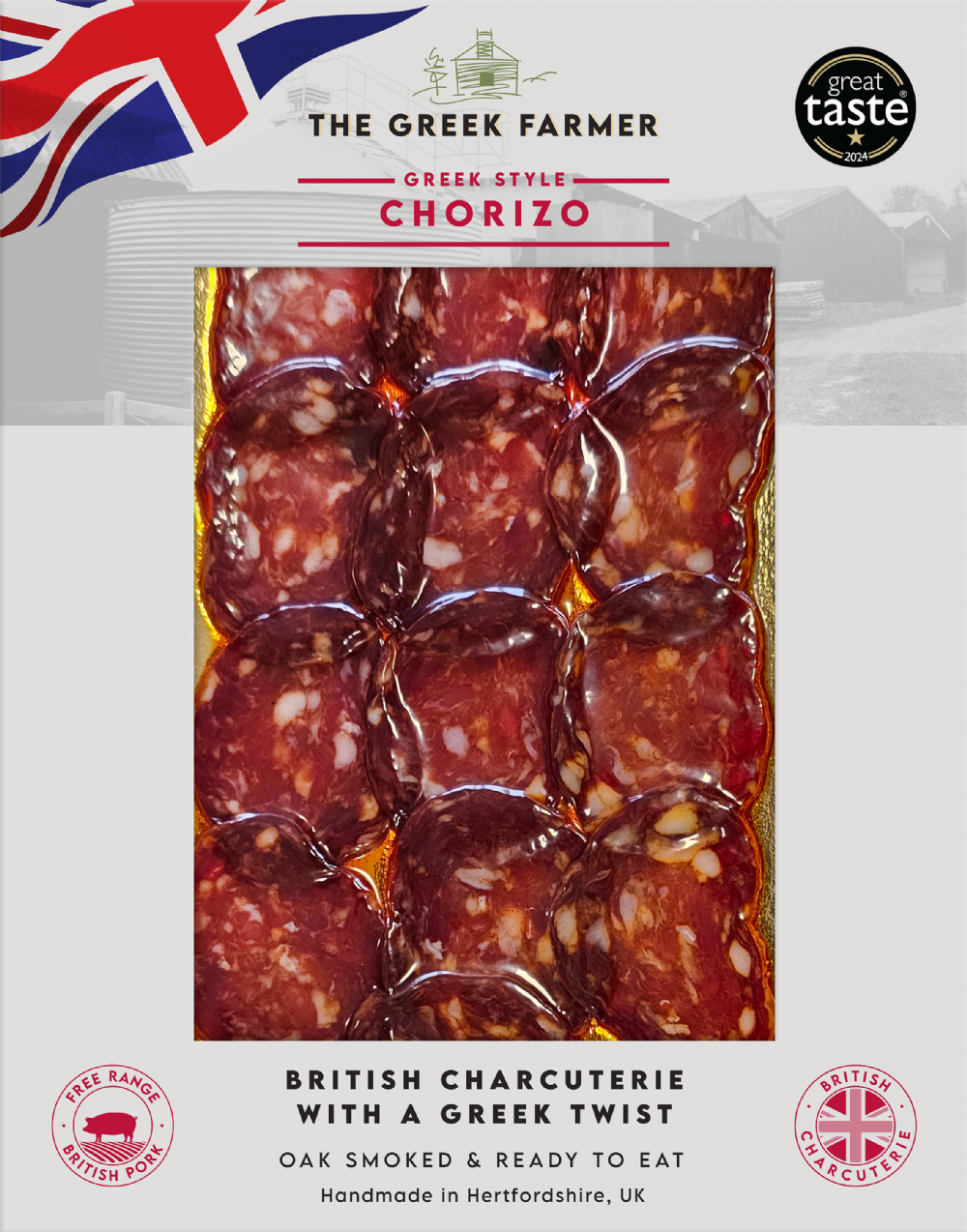 This is the chorizo reimagined with a Mediterranean flair. Infused with garlic, cayenne pepper, paprika, and a splash of Greek Cypriot red wine, then oak-smoked for 8 hours, our British free-range chorizo is delicate in flavour, never overpowering in garlic or heat. It’s the perfect balance of spice and smokiness with a unique Greek influence. Whether enjoyed on its own with some cheese or added to your favorite dishes, this versatile salami is a pantry essential. Its subtle heat and fragrant spices make it ideal for a wide range of recipes, from tapas to pasta, or even on a pizza.