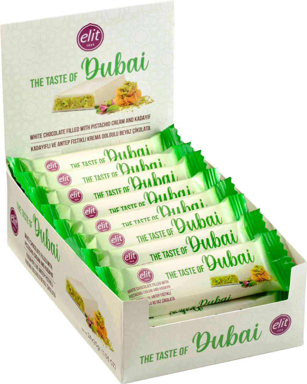 Taste the Difference: Dubai Chocolate by Elit! Crispy, crunchy kadayif meets carefully selected pistachios via the mastery of Elit Chocolate. This unique combination offers a magnificent taste experience where traditional flavours are blended with a modern interpretation. The crunchiness of kadayif, the rich aroma of pistachios and the touch of Elit White Chocolate combine to offer an unforgettable taste journey with every bite! Try the White chocolate variant now to taste the difference!
