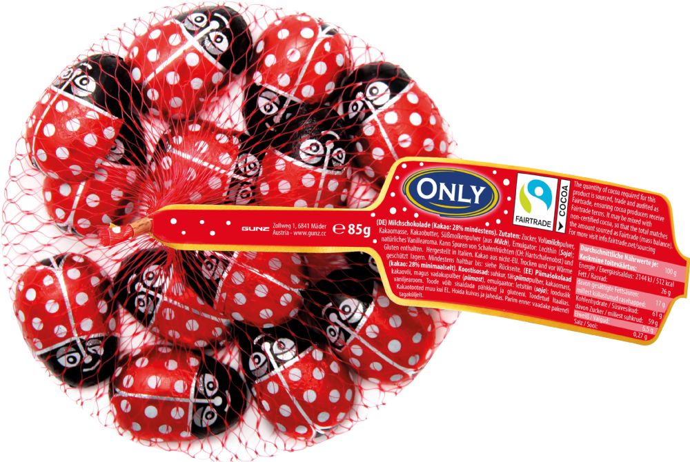 Only Ladybugs, made from delicate milk chocolate, provide joyful chocolate moments with a guaranteed happiness. Perfect for giving as gifts, scattering, or simply enjoying yourself.