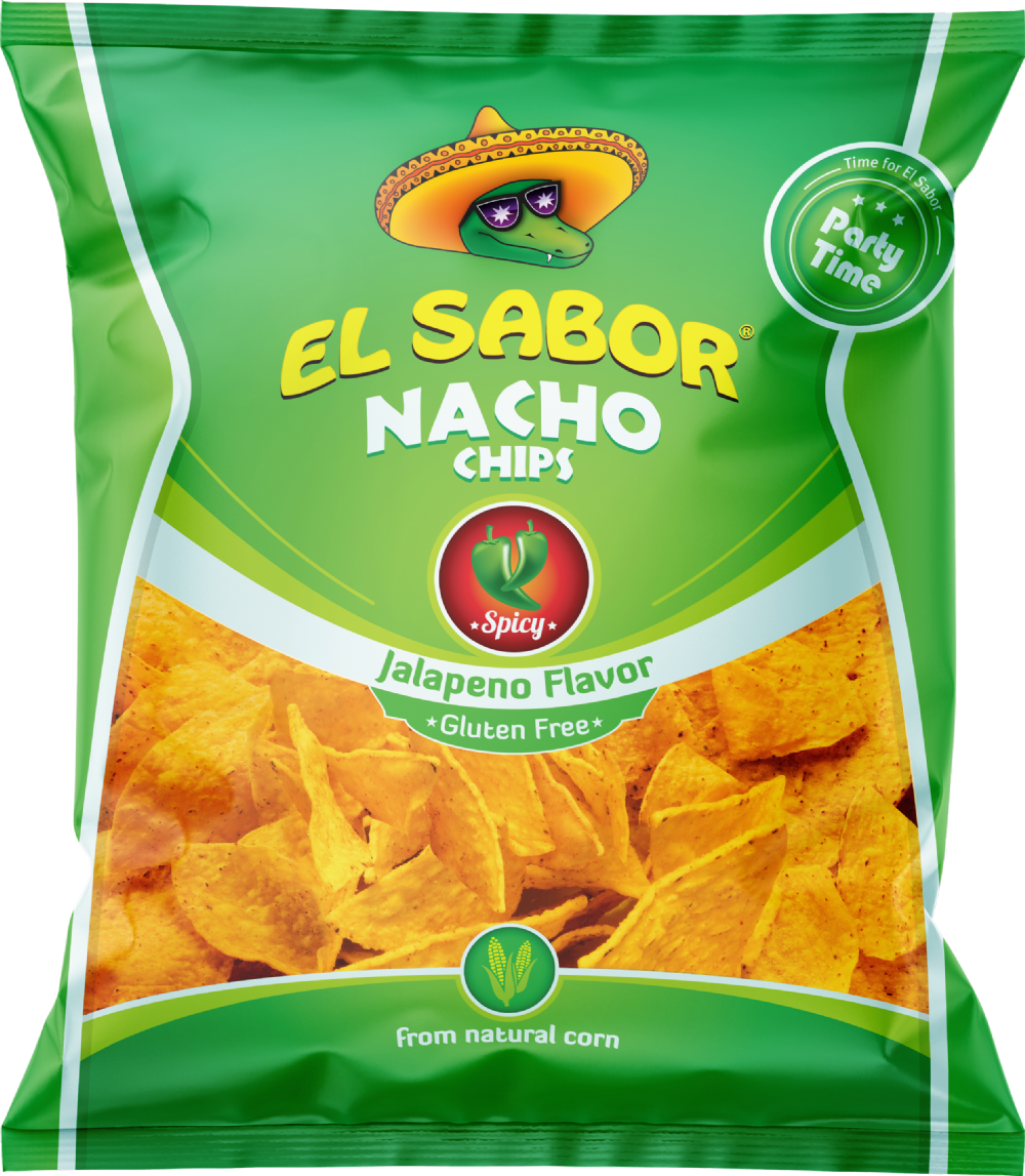 Crispy Jalapeño flavoured nachos from non-genetically modified corn.