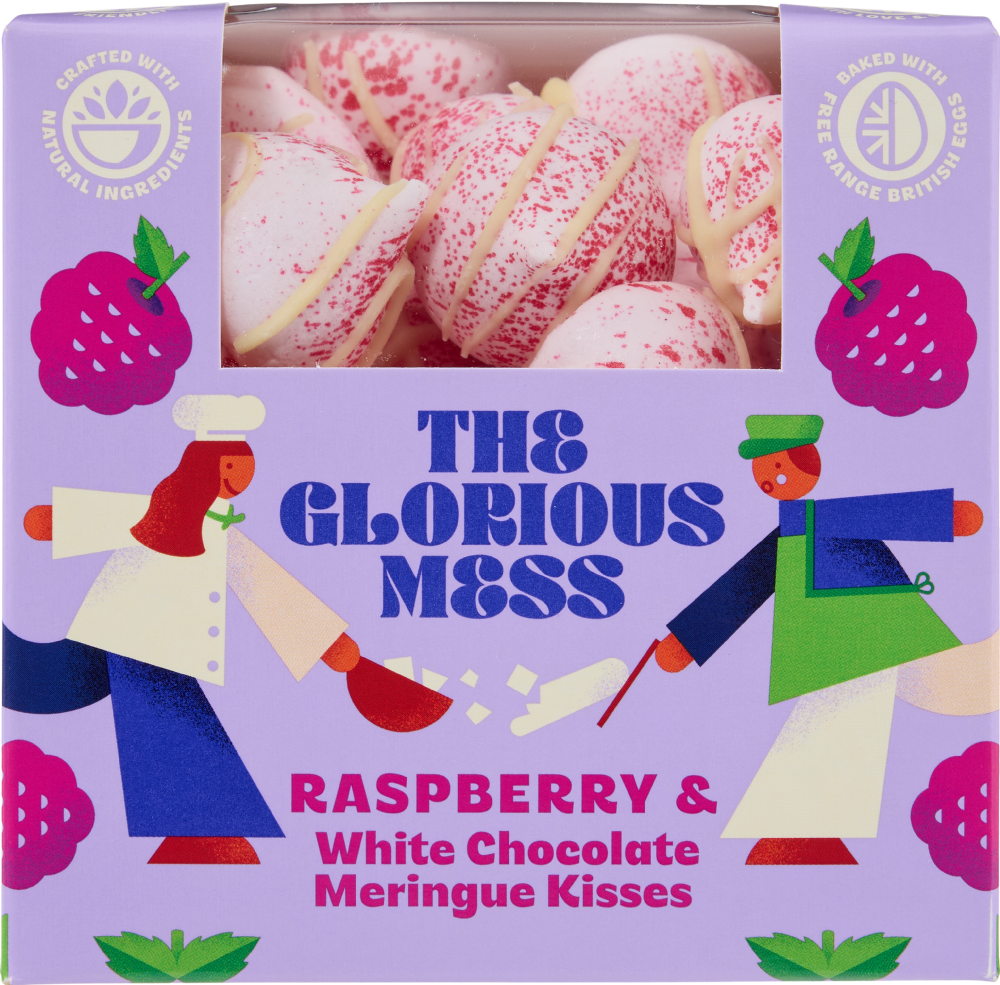 Bright, bold and bursting with flavour, these Raspberry & White Chocolate Meringue Kisses are a cheeky little treat that packs a delicious punch. Made with British free-range eggs and crafted with love and care in Shropshire, these sweet kisses combine vibrant raspberry with a luscious drizzle of white chocolate. Tumble over ice cream, crown cupcakes, or crush and layer into an Eton Mess for a bold, berry delicious bite that’s sweet, satisfying, and gloriously messy - just the way dessert should be.