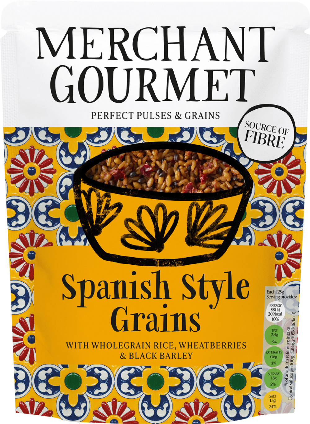A pouch full of sunshine. Our Spanish Style Grains are a delicious combination of wholegrain rice, wheatberries and black barley. All cooked together with smoky paprika, tomato paste and red peppers. The perfect base to a plant-based paella or summer salad.