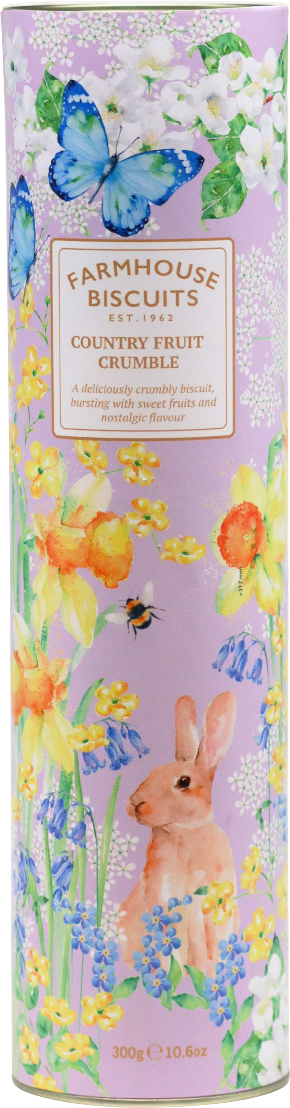Country Fruit Crumble Biscuits in Spring Rabbit Tube 300g from Farmhouse Biscuits.