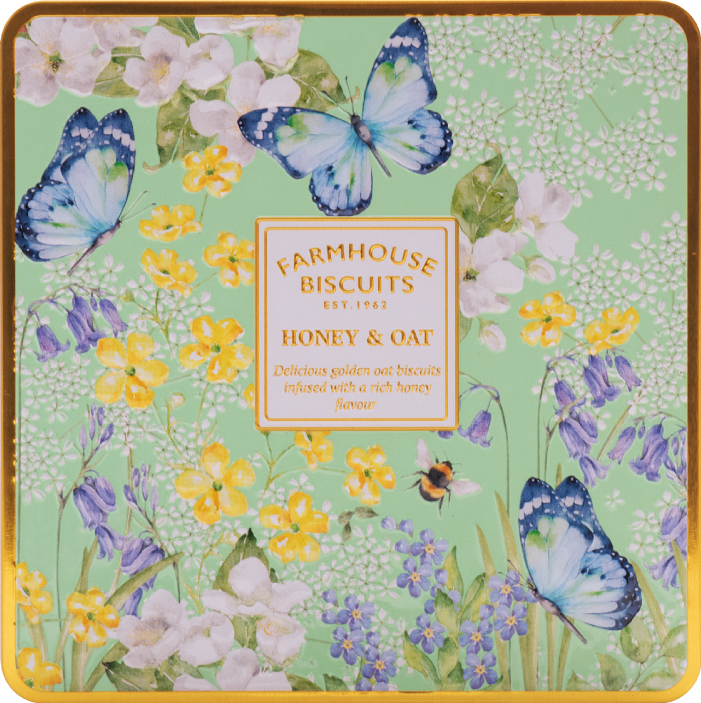 Farmhouse Biscuits Honey & Oat Biscuits in English Garden Tin 250g