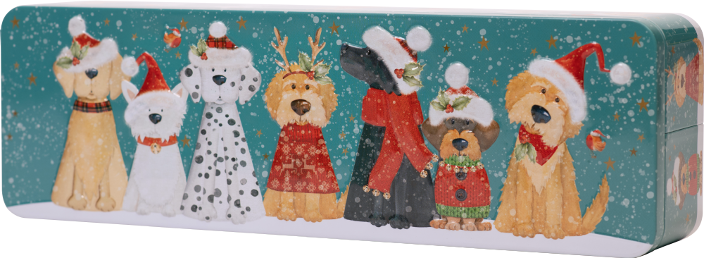 Lemon & Orange Biscuits in Embossed Christmas Dog Tin 225g from Farmhouse Biscuits.