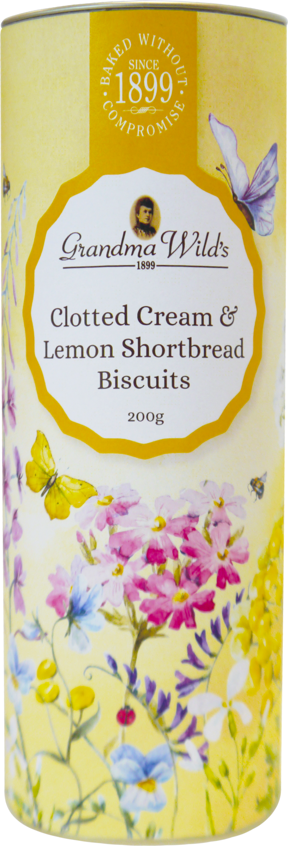 Grandma Wild's Clotted Cream & Lemon Shortbread Biscuits in Wildflower Meadow Tube 200g
