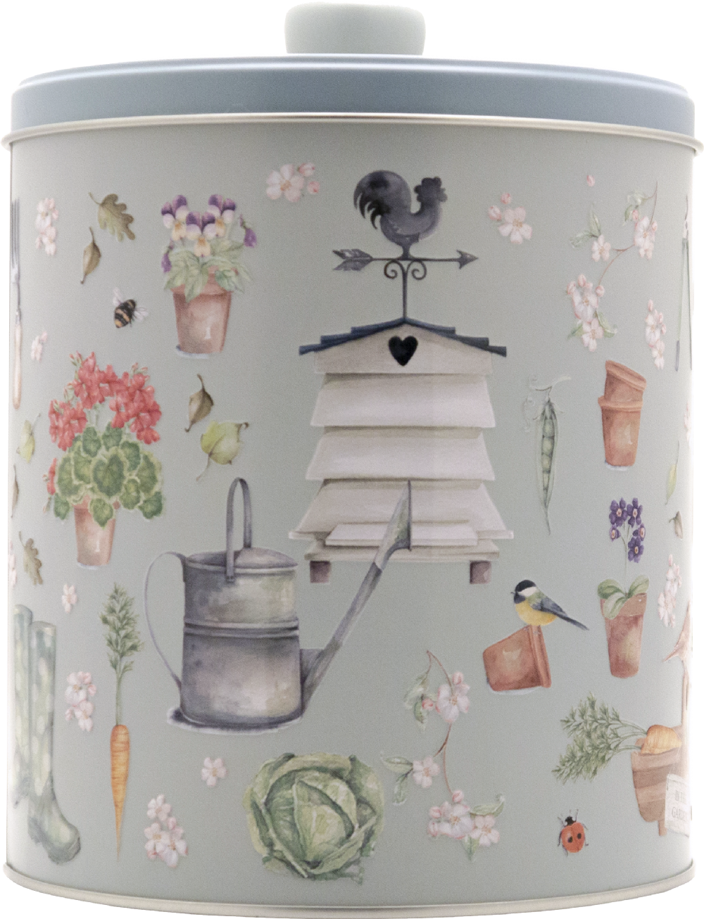 Prettily embossed round biscuit tin with a beehive and garden design. Filled with 3 delicious biscuit flavours. An ideal gift for a green-fingered friend.