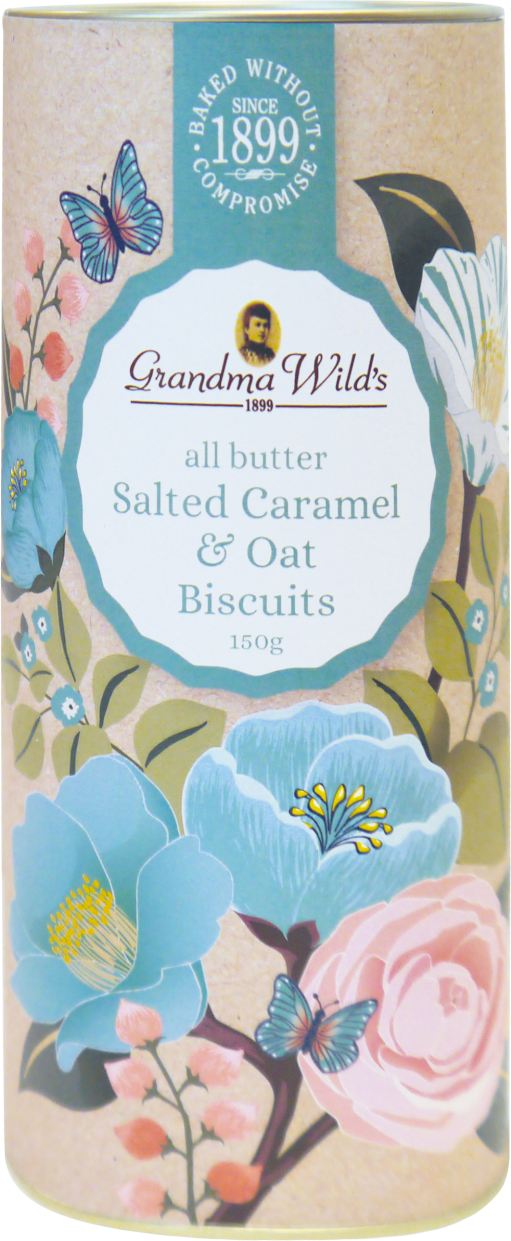 Grandma Wild's Salted Caramel & Oat Biscuits in Botanical Floral Tube 150g