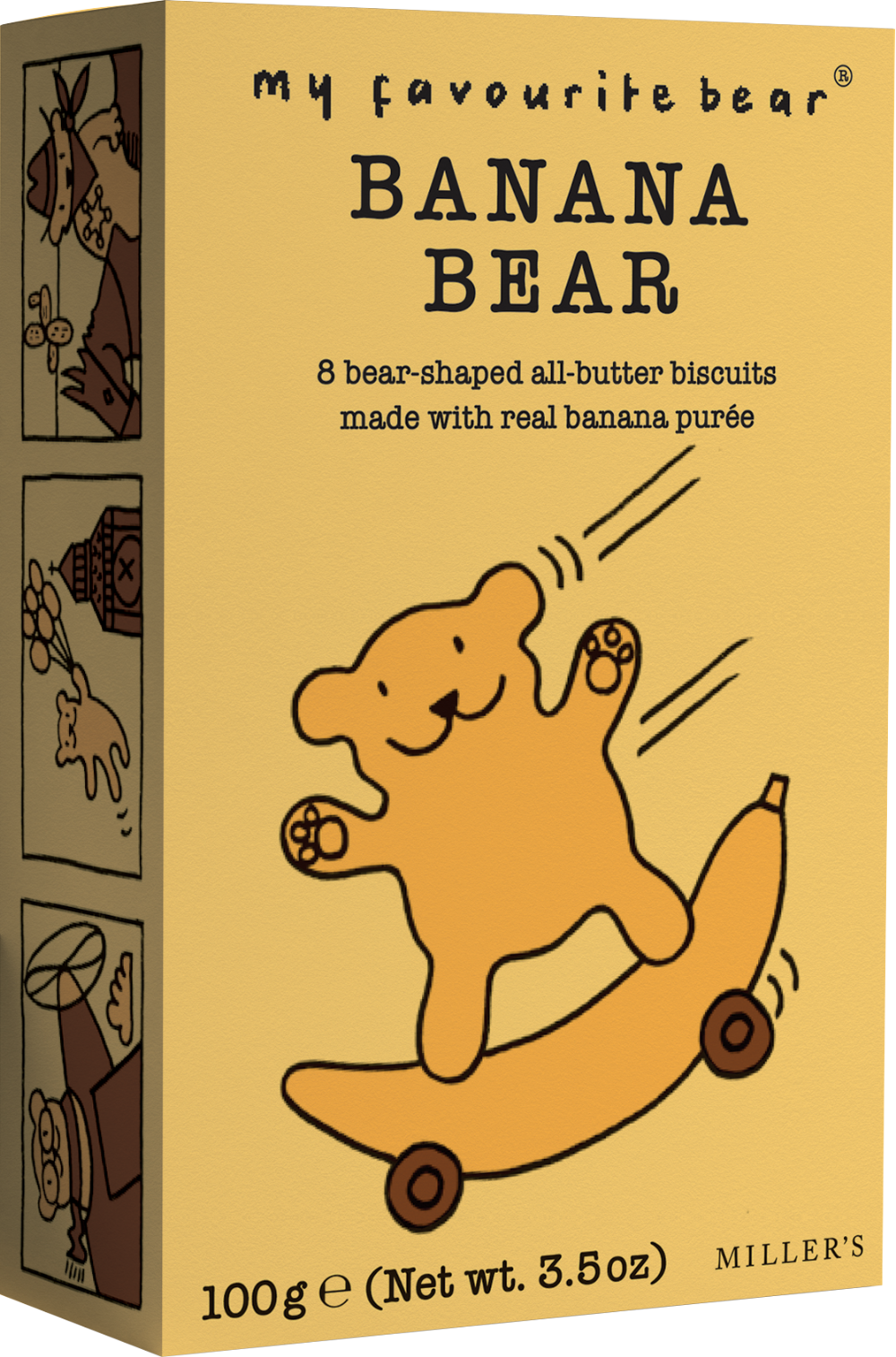 All-butter, all-natural, bear shaped biscuits, with real banana purée.