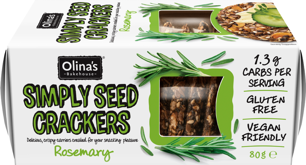 Gluten Free Simply Seed Crackers - Rosemary 80g from Olina's Bakehouse.