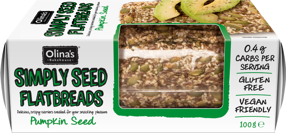 Gluten Free Simply Seed Flatbreads - Pumpkin Seed 100g from Olina's Bakehouse.