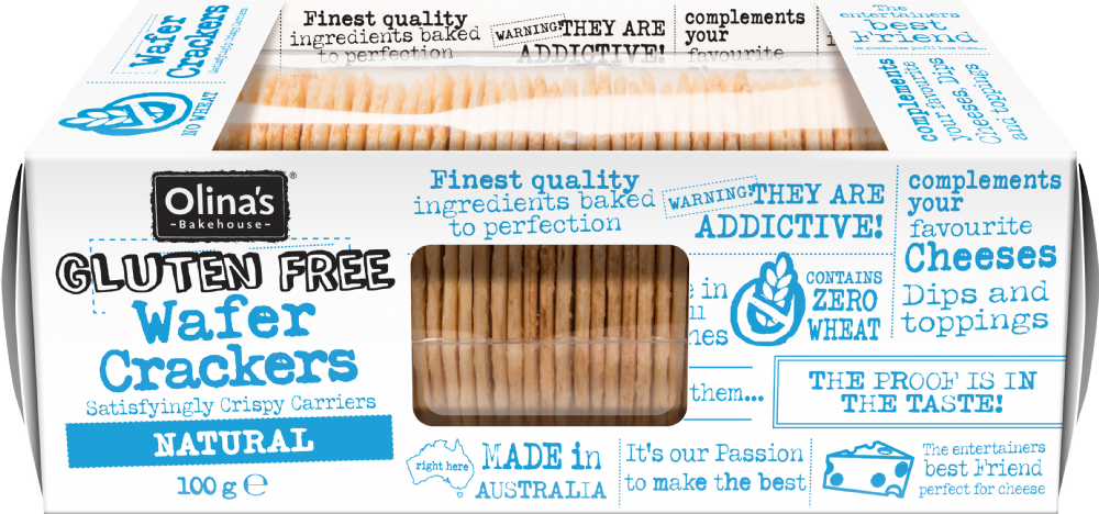 Gluten Free Wafer Crackers - Natural 100g from Olina's Bakehouse.