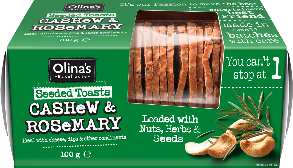 Seeded Toasts - Cashew & Rosemary 100g from Olina's Bakehouse.