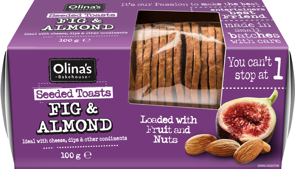 Seeded Toasts - Fig & Almond 100g from Olina's Bakehouse.