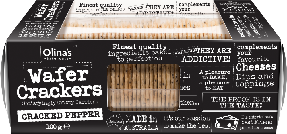 Olina's Bakehouse Wafer Crackers - Cracked Pepper 100g