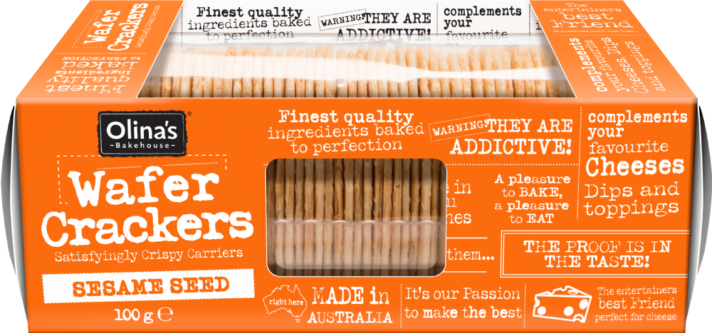 Wafer Crackers - Sesame Seed 100g from Olina's Bakehouse.