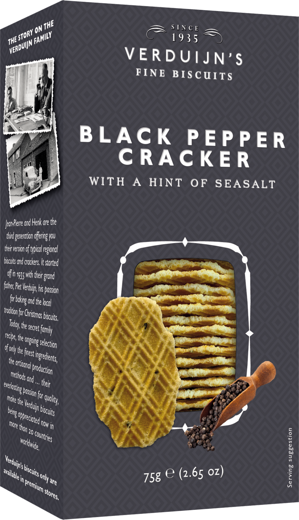 Black Pepper Crackers with Sea Salt 75g from Verduijn's.