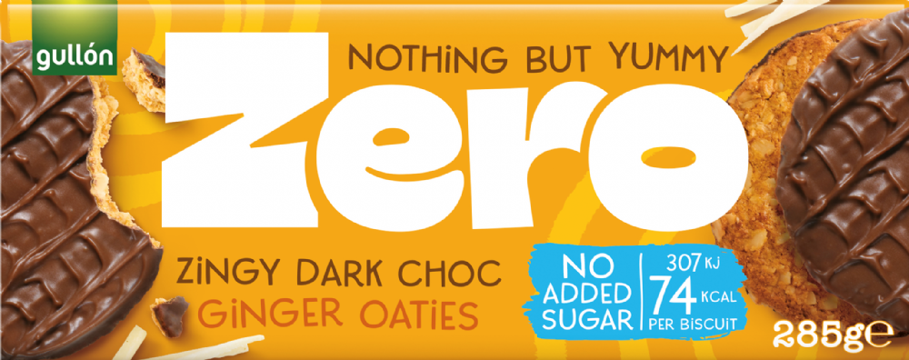 Say hello to Zero. Gullon have worked out a way to make our favourite treats taste just as yummy but without the need for sugar. These simply delicious sugar free chocolate ginger oaties are also high in fibre, suitable for vegetarians and free from colours and preservatives.