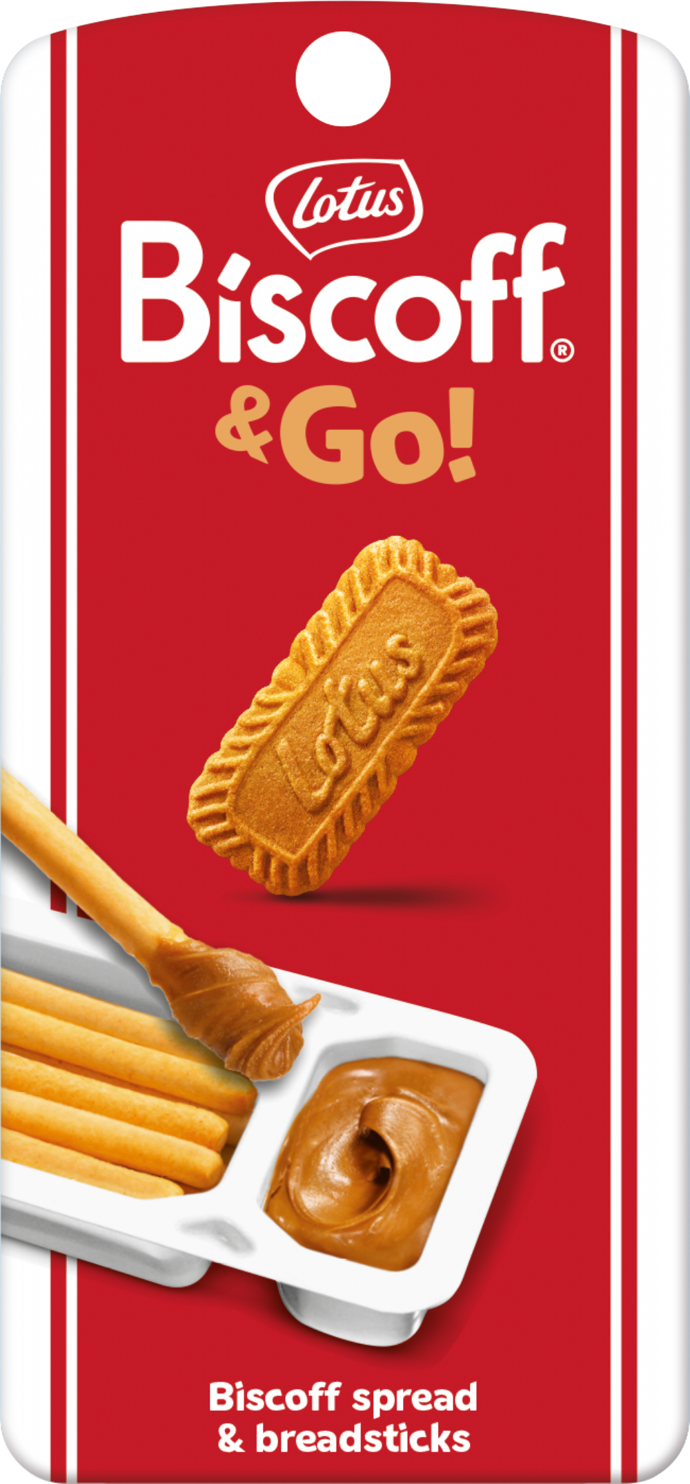 Now you can enjoy your biscoff on the go! A snack pack of biscuit spread and breadsticks.
