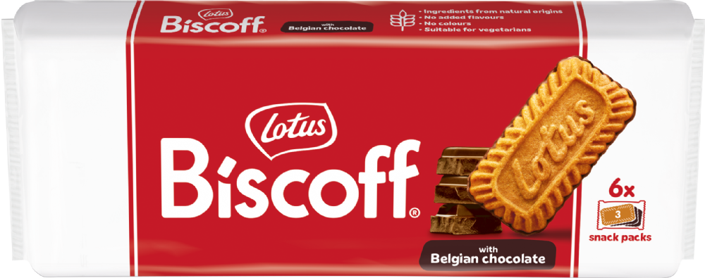 The nation's favourite caramelised Lotus Biscoff biscuits coated on one side with Belgian milk chocolate.