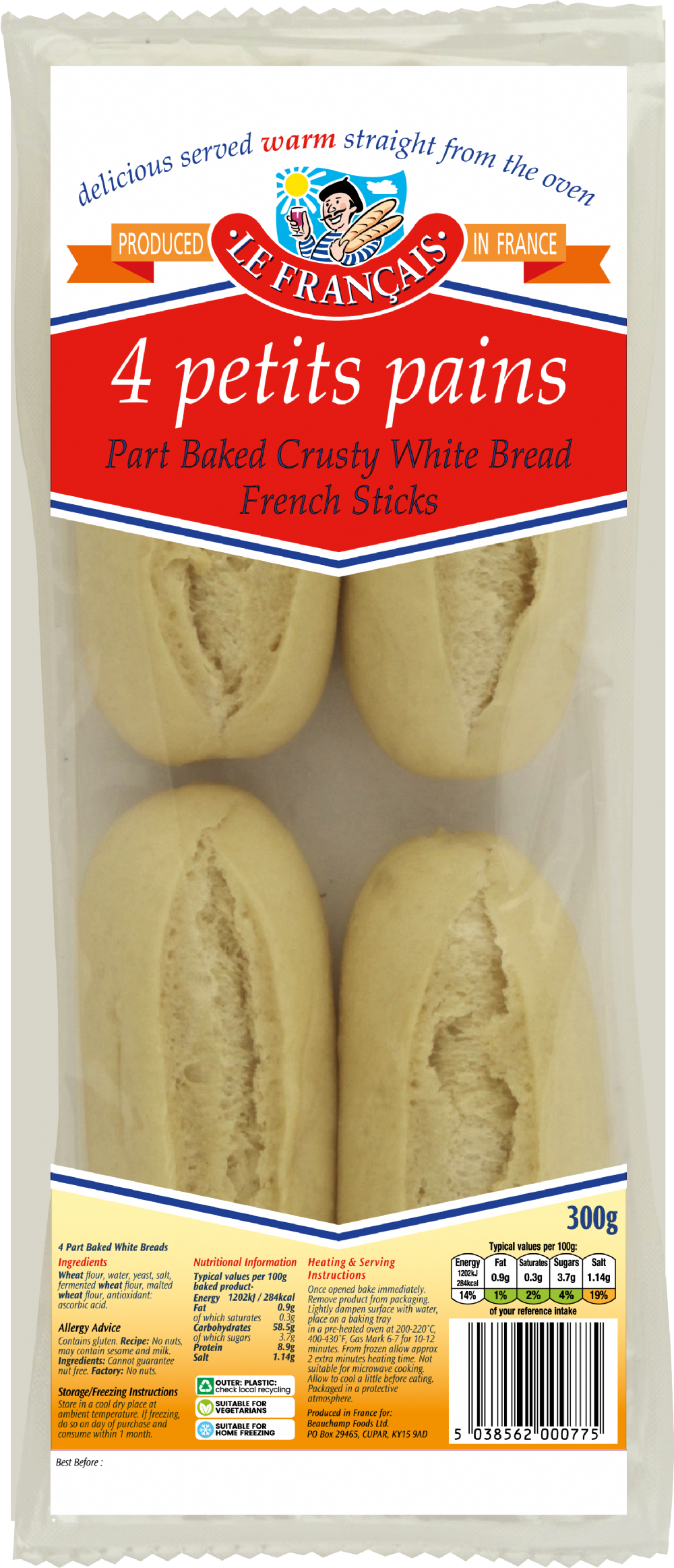Top quality branded morning goods range with an extra long ambient shelf life. Part baked for ease.