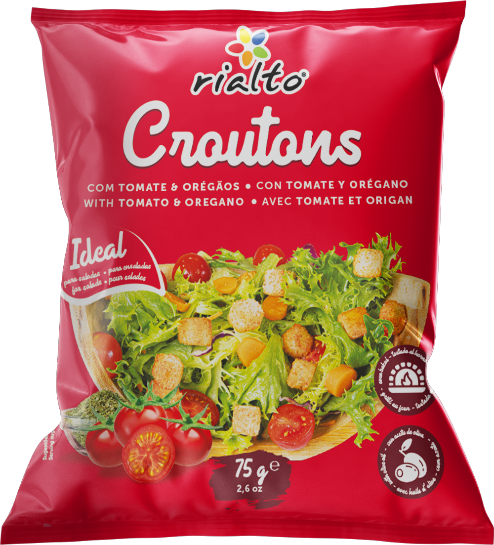 Made with olive oil, these herby croutons are ideal for accompanying salads. Oven baked not fried and a source of fibre.Â