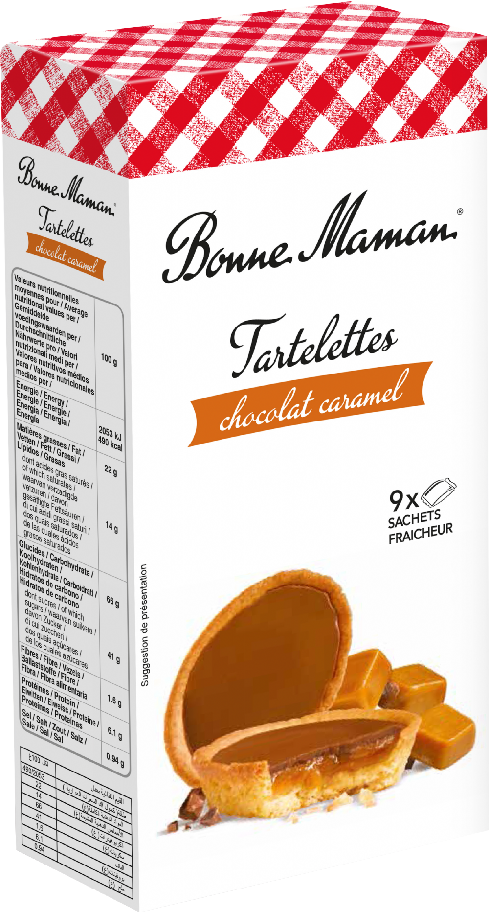 Bonne Maman Petites Tartlets are made to an authentic French recipe with the fi nest natural ingredients. Their deliciously crisp, buttery crust encases a rich, velvety filling of Chocolate Caramel, bringing an indulgent little taste of France to any occasion.