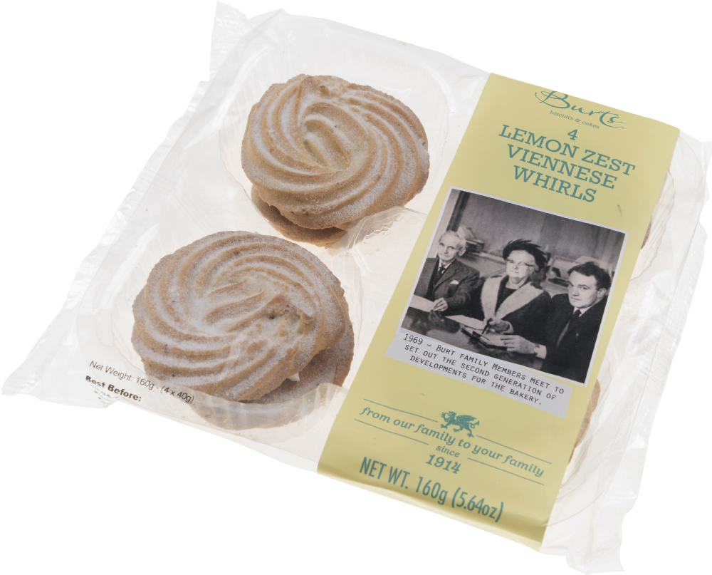 4 Lemon Zest Viennese Whirls 160g from Burts the Bakers.