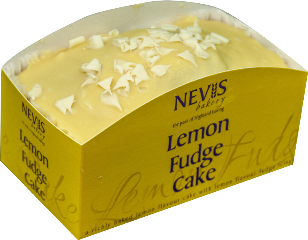 Moist zesty cake topped with fudgy lemon flavour icing and chocolate curls.