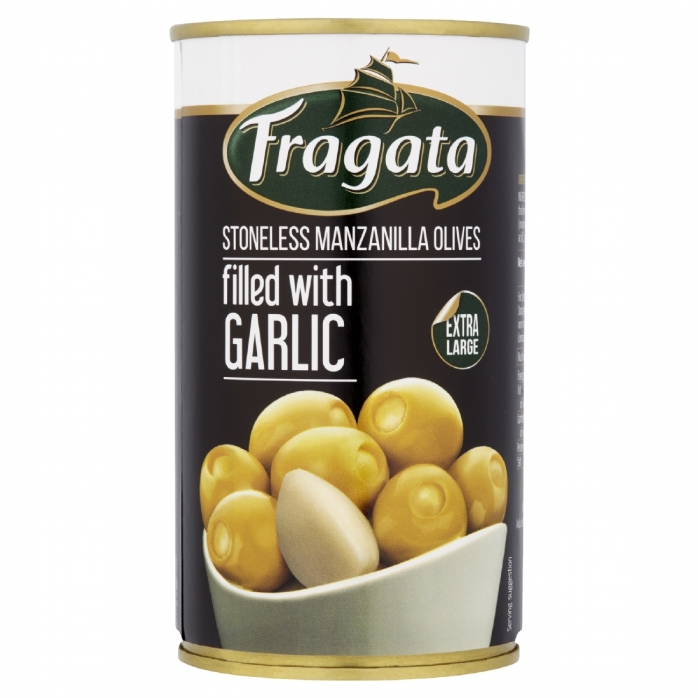 Firm, crisp extra large green Manzanilla olives filled with the unmistakable flavour of garlic. This irresistible combination is perfect on a party table, and makes a flavoursome addition to tapas with friends.