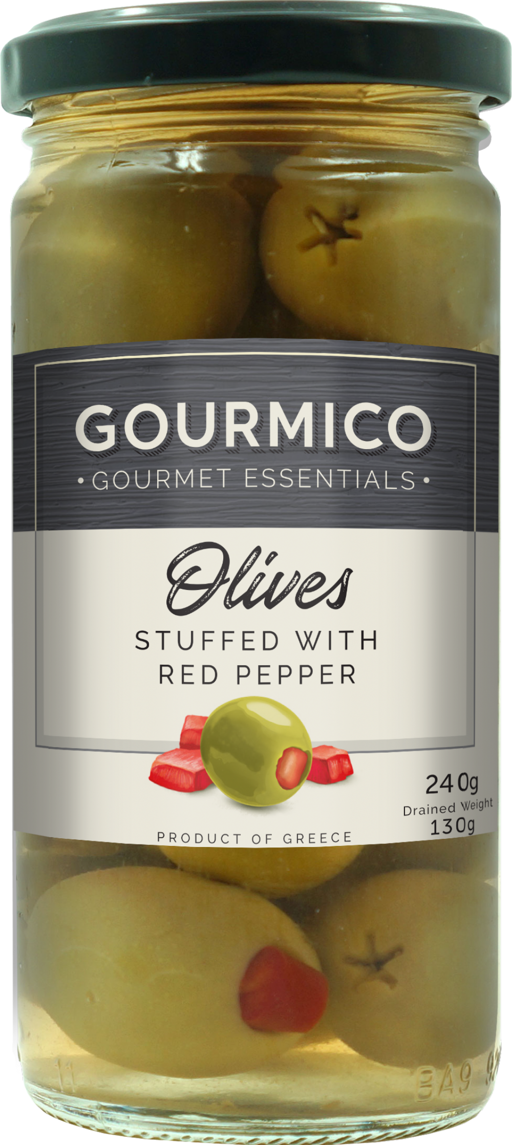 Imagine wandering through the sun-drenched Halkidiki orchards, where each olive tree tells a tale of ancient tradition and rich heritage. At Gourmico, we've meticulously selected the finest Halkidiki green olives and stuffed them with vibrant, sweet red peppers. Pair them with creamy goat's cheese and smoked meats for an exquisite appetiser.