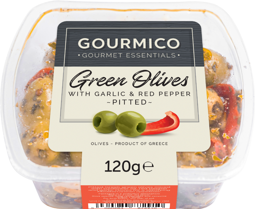 Rich, vibrant, and full of Mediterranean warmth, this Gourmico Pitted Greek Green Olives with Garlic and Red Pepper pot is a flavourful celebration of sun-drenched ingredients. Perfect for when you crave a quick escape to the heart of Greece.