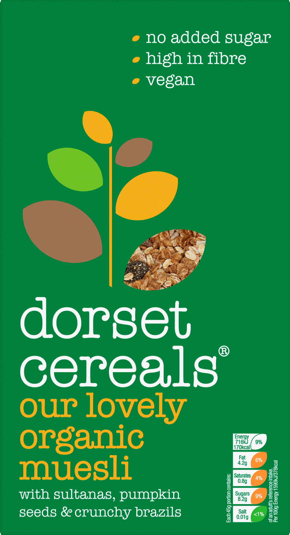 Organic Dried Fruit Nuts and Seeds (33%) [Organic Raisins (Organic Raisins, Organic Sunflower Oil), Organic Sultanas (10%) (Organic Sultanas, Organic Sunflower Oil), Organic Pumpkin Seeds (3.5%), Organic Sunflower Seeds, Organic Brazil Nuts (3%)] Organic Wholegrain Oat Flakes, Organic Barley Flakes, Organic Wholegrain Wheat Flakes, Organic Toasted Wholegrain Wheat Flakes.