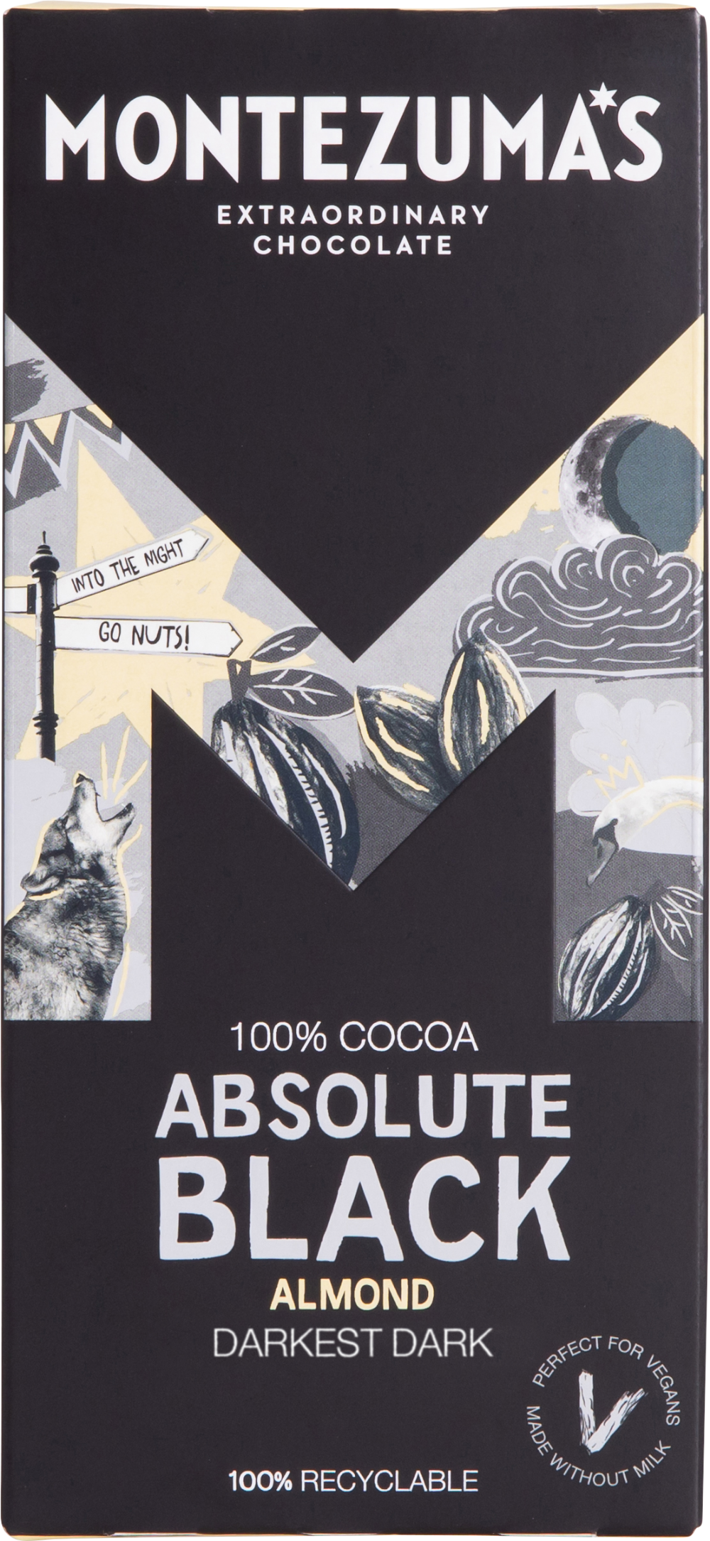 Almonds add a natural, creamy, nutty crunch to this already awesome, dramatic 100% cocoa dark chocolate. Don’t say we didn’t warn you!