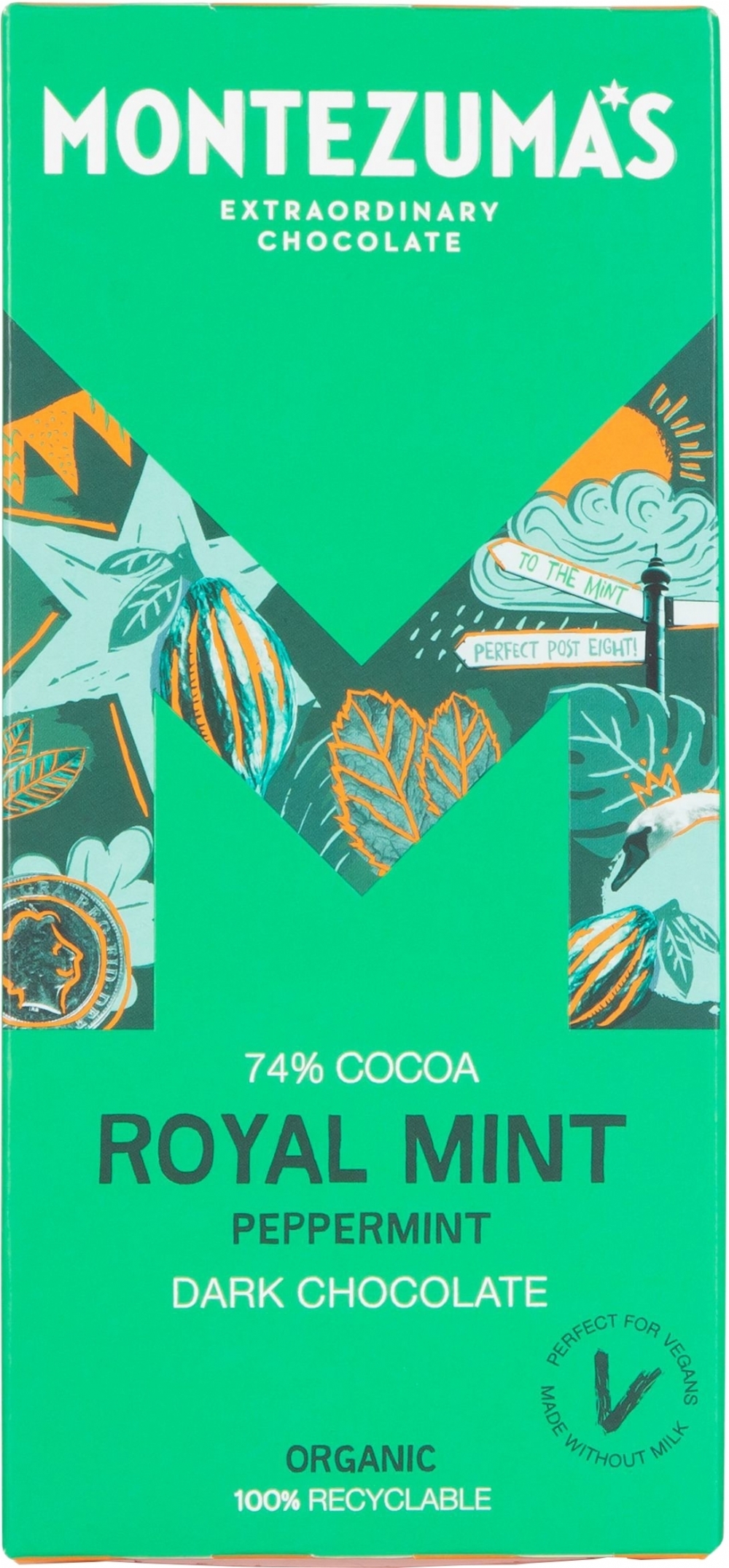 Organic Dark Chocolate (Organic Cocoa Mass, Organic Cane Sugar, Organic Cocoa Butter, Organic Vanilla Extract), Natural Flavouring: Organic Mint Oil.