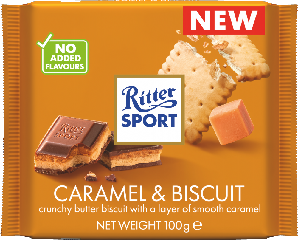 Caramel & Biscuit Milk Chocolate 100g from Ritter Sport.