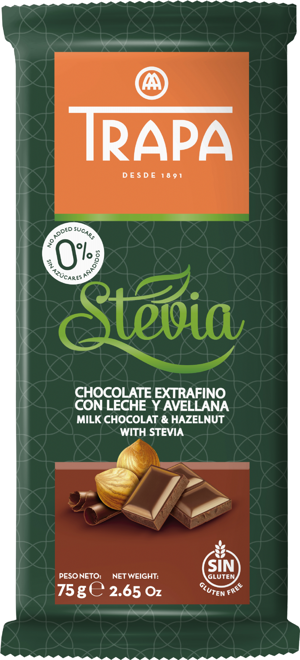 Milk Chocolate & Hazelnut with Stevia 75g from Trapa.