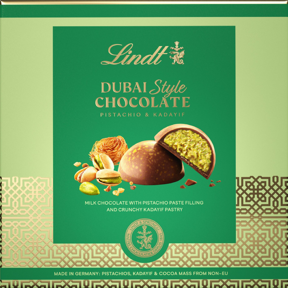 Discover the exclusive indulgence of Lindt Dubai Style Chocolate Let our Lindt Maîtres Chocolatiers take you on a journey into the enjoyable, luxurious world of Dubai Style Chocolate, where confectionery, art and innovation merge. Enjoy delicious melting Lindt milk chocolate, which impresses with an incomparable filling made from the finest pistachio paste and crunchy kadayif.