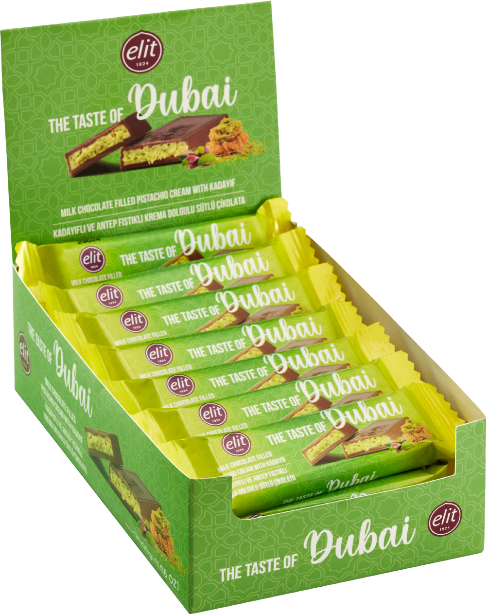 Taste the Difference: Dubai Chocolate by Elit! Crispy, crunchy kadayif meets carefully selected pistachios via the mastery of Elit Chocolate. This unique combination offers a magnificent taste experience where traditional flavours are blended with a modern interpretation. The crunchiness of kadayif, the rich aroma of pistachios and the touch of Elit Chocolate combined in Dubai chocolate offer an unforgettable taste journey with every bite! Try now to taste the difference!