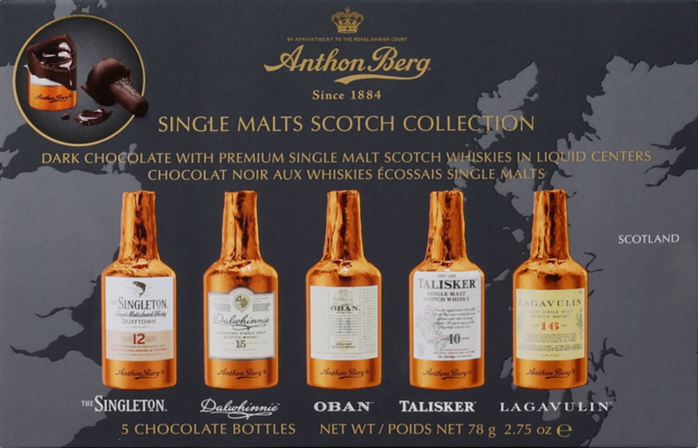 Chocolate Single Malts Scotch Collection Bottles - 5 Pack 78g from Anthon Berg.