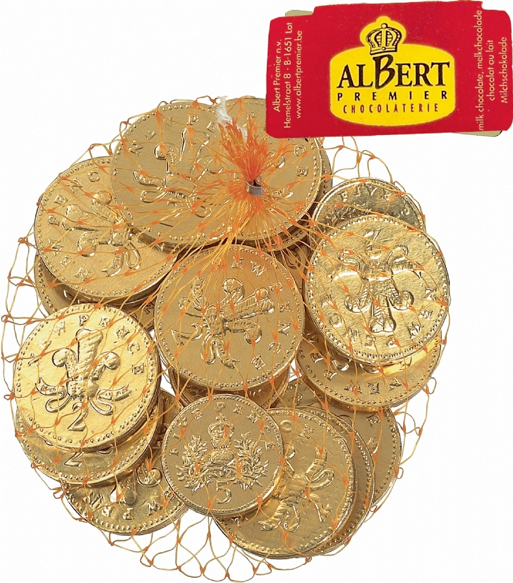 Foiled Milk Chocolate UK Coins in Net 100g from Albert.