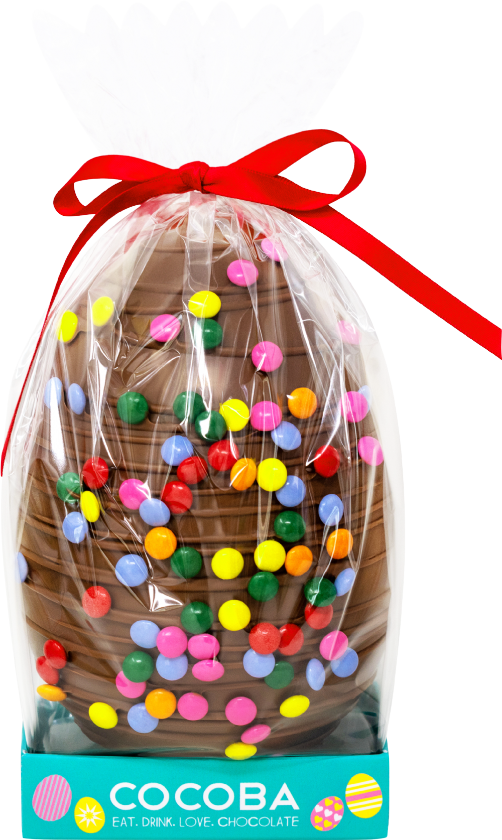 Embrace the fun of Easter celebrations with our colourful Candy Bean Milk Chocolate Easter Egg! Expertly made with care by our chocolatiers, this eye-catching chocolate egg is made from smooth milk chocolate, and decorated with an artistic layer of chocolate drizzle before being topped with vibrant candy beans to add a captivating pop of colour and a satisfying crunch in every nibble. Our premium chocolate recipe is crafted using the finest quality cocoa, promising a melt-in-the-mouth experience that's bursting with flavour to delight chocoholics of all ages.