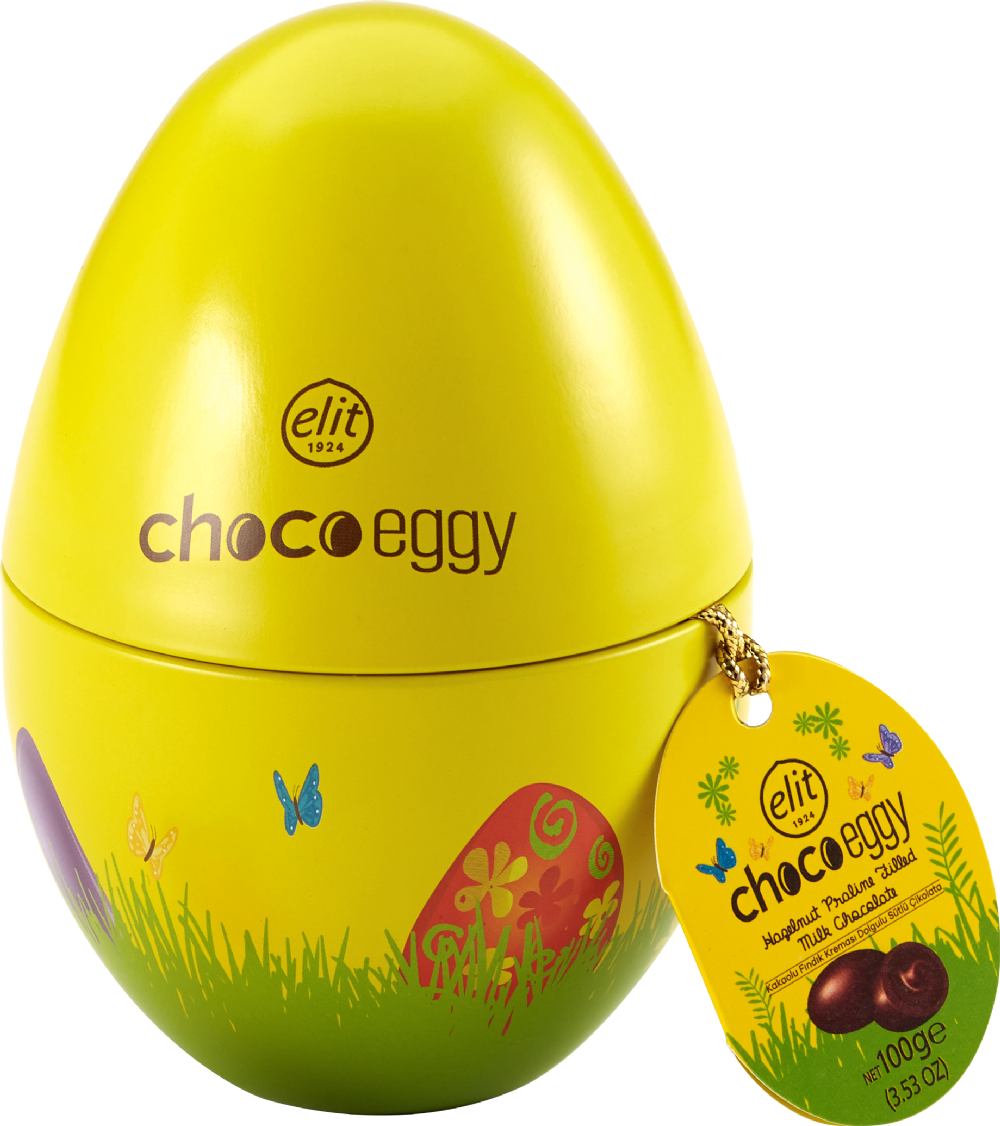 Elit Chocoeggy Milk Chocolate Praline Eggs - Yellow Egg Tin 100g