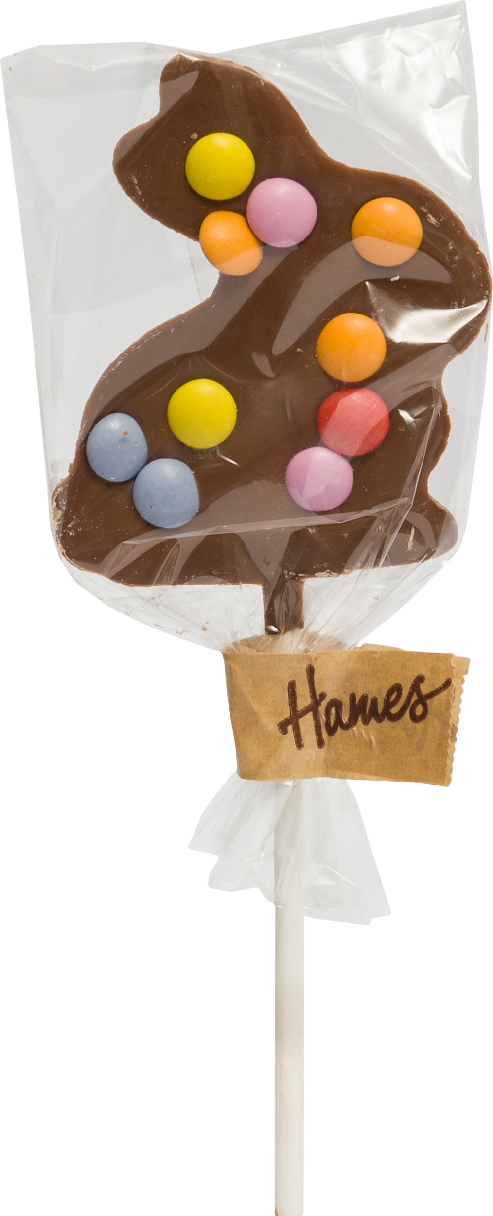 Milk Chocolate Bunny Lollipop with Candy Beans 26g from Hames.