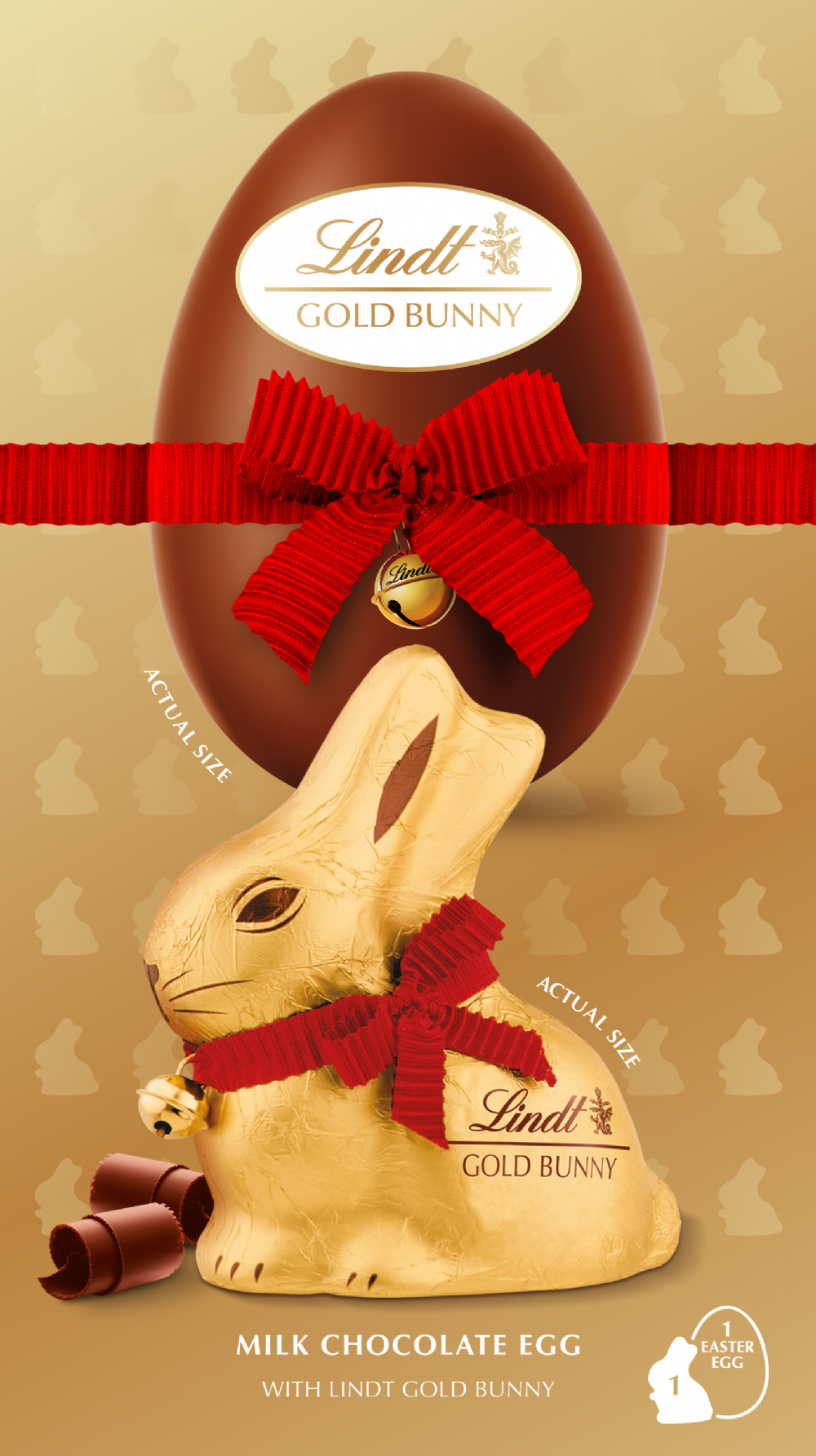 A smooth milk chocolate egg, one Lindt Gold Bunny and five mini Lindt Gold Bunny chocolates. Our Lindt Gold Bunny is wrapped with care and affection, crafted by our Lindt Master Chocolatiers and is the perfect gift to make Easter sparkle.