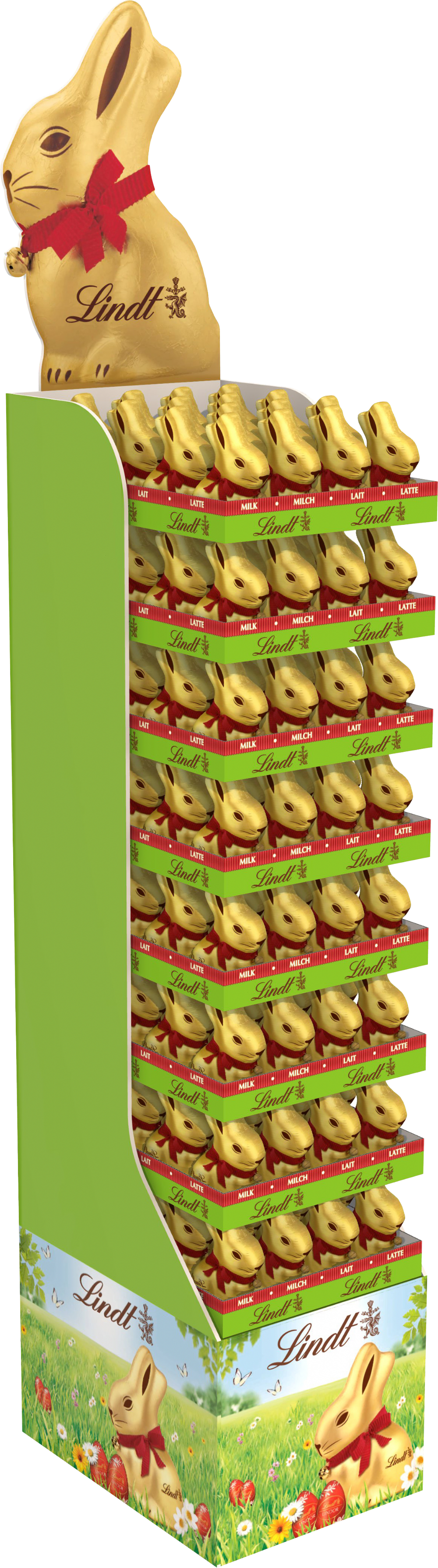 A ready-filled display of the iconic Gold Bunny. Hop into the Easter season with our iconic Lindt Gold Bunny. Every year, our Master Chocolatiers combine the finest Swiss chocolate with their unrivalled expertise to masterfully craft each one. If you are looking for something a little different this Easter, discover our Milk Chocolate Gold Bunny and enjoy the irresistibly creamy and sumptuously sweet flavours of our finest smooth milk chocolate. With its signature gold foil, red ribbon collar and gold bell, it is the perfect gift to treat a loved one — or yourself! Make them smile from ear to ear this Easter with the Lindt Gold Bunny.