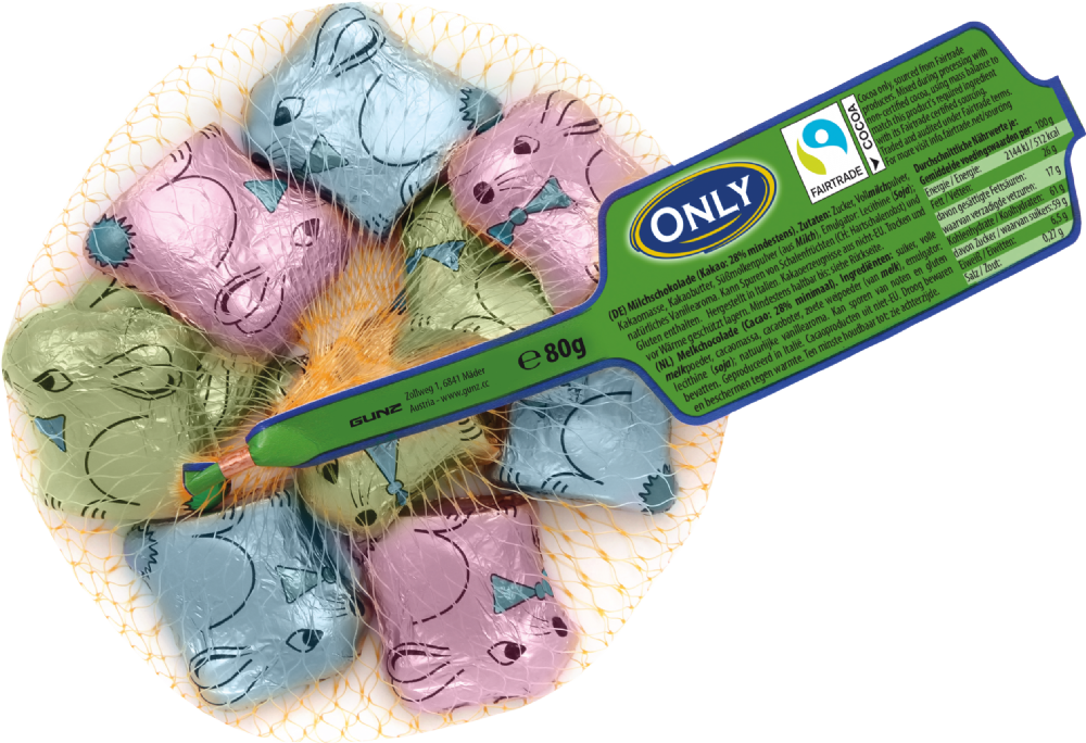 The adorable Only Easter bunnies made from fine milk chocolate with a creamy milk filling enchant with their cheerful pastel colours. Perfect for Easter baskets, as table decorations, or simply for snacking – a real eye-catcher with indulgence guaranteed!